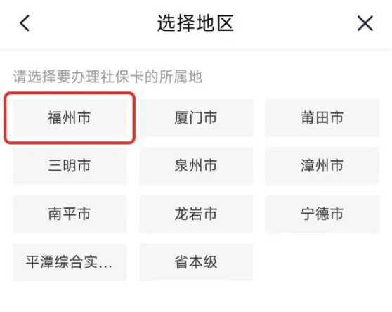 3.社保卡所屬地選擇“福州市”。