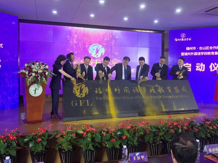 隨后,與會有關領導上臺,為福州外國語學校教育集團揭牌。全體來賓和師生代表共同見證了這一難忘的歷史時刻。