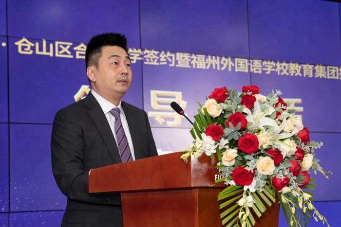 儀式上,福州市教育局二級調研員汪孝敏,倉山區委常委任巍,福州外國語學校校長廖素娟,福州城門中學校長林萍上臺簽署了四方合作協議書。