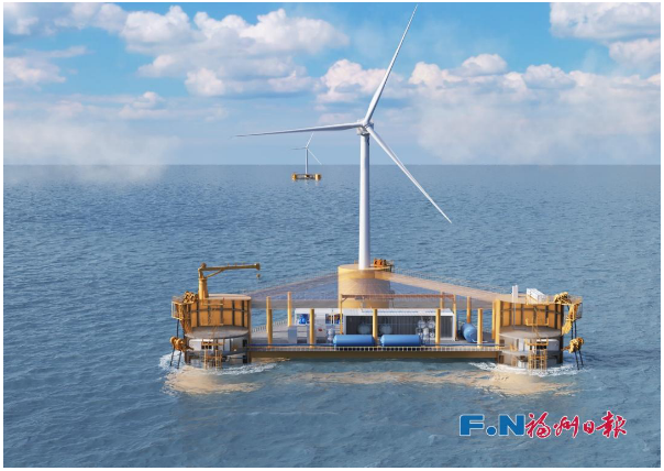 全球首臺漂浮式風電海水直接制氫平臺概念圖。(東福研究院供圖)