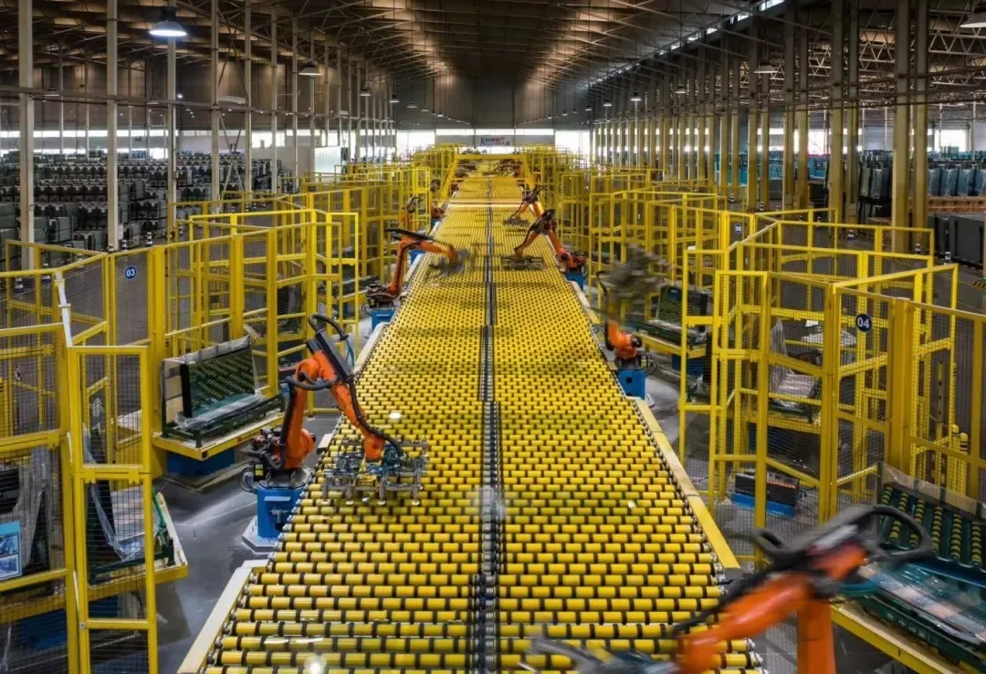 工業(yè)機(jī)器人在福耀浮法玻璃生產(chǎn)線上作業(yè)