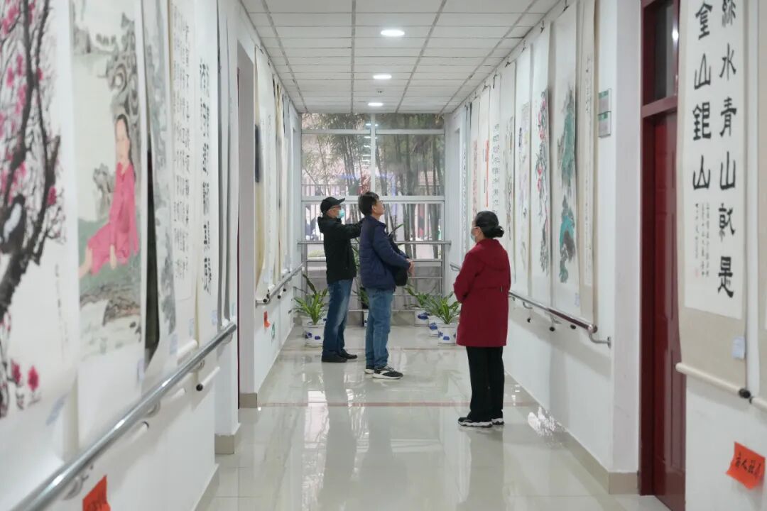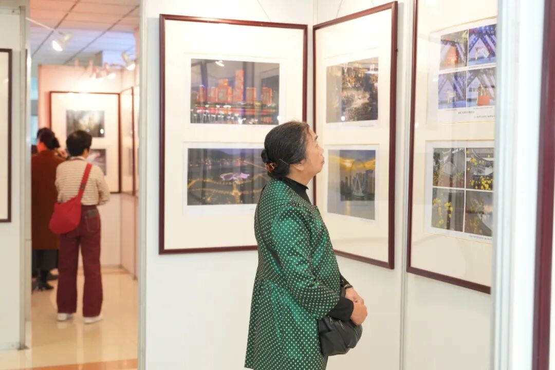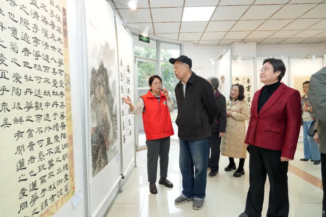簡短的開幕儀式后,與會領導、嘉賓與老年學員們移步展廳,興致盎然地參觀了攝影、書畫及手工作品展。