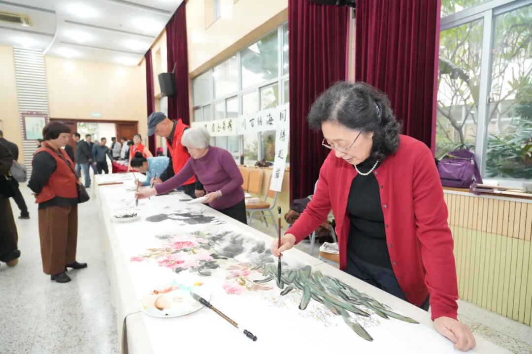 移步至書畫筆會現場,氣氛熱烈而專注。市級老領導趙守箴、方慶云、郭永燦,以及市老年大學書畫學會、霞光畫院的“銀齡書畫家”們展紙揮毫,筆墨縱橫。他們或凝神構思,運筆如云;或即興發揮,落筆生花。行楷隸草各顯風采,花鳥山水意趣盎然。一幅幅作品或寄情自然,或歌頌時代,或抒寫家國情懷,主題鮮明、格調高雅,生動詮釋了“有福之州”老人們豐富多彩、精神充盈的幸福晚年。
