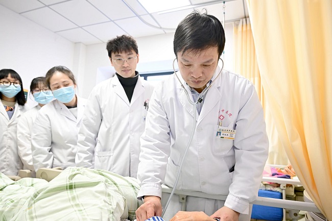 采訪時(shí)雖然停診,有患者看到主任在,帶著報(bào)告來咨詢,何主任總是來者不拒,優(yōu)先看診,不急不躁。