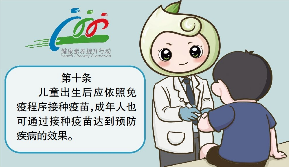 國家最新發(fā)布的《健康素養(yǎng)66條》第10條提到:“兒童出生后應(yīng)按照免疫程序接種疫苗,成年人也可通過接種疫苗達(dá)到預(yù)防疾病的效果。”