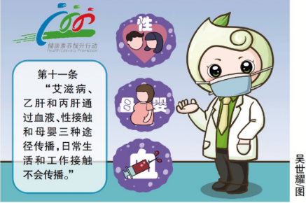 國家最新發(fā)布的《健康素養(yǎng)66條》第11條指出:“艾滋病、乙肝和丙肝通過血液、性接觸和母嬰三種途徑傳播,日常生活和工作接觸不會傳播。”