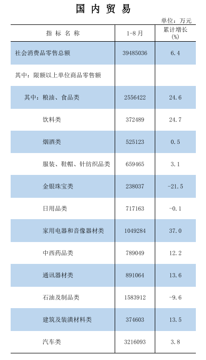 2025年1-8月國內貿易