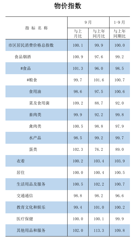 2025年1-9月物價指數