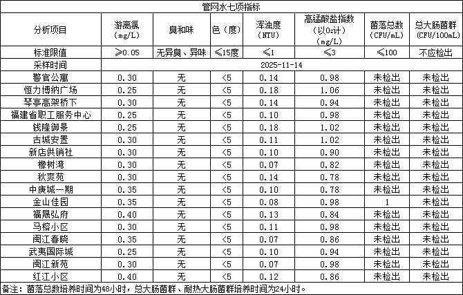 2025年11月14日管網(wǎng)水日常檢測