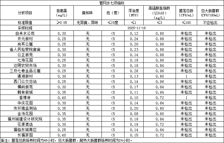 2025年11月18日管網水日常檢測