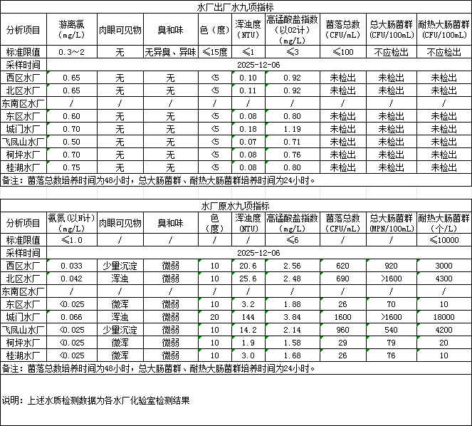 2025年12月6日供水水質(zhì)信息發(fā)布
