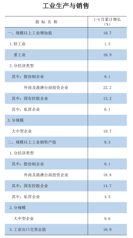 2024年1-4月工業生產與銷售