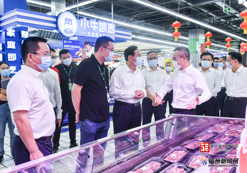 在永輝超市福新店,林寶金與永輝集團負責人深入交流,詳細了解食品安全監管、節前商品供應、疫情防控等情況,叮囑市場經營管理人員要精心組織貨源,嚴把食品進貨查驗、生產加工等關鍵環節,確保市場供應充足、物價穩定、食品安全;要求有關部門加強服務保障,全力幫扶民生企業紓困解難,兜住兜牢民生底線。