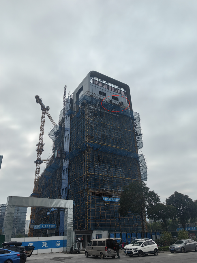 長樂區某工地項目:工人在腳手架上高空作業未正確佩戴安全繩,且腳手架未鋪設踏板。